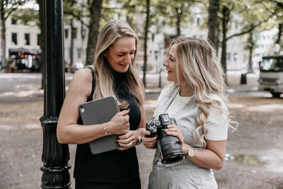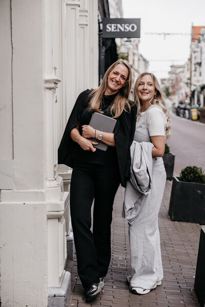 Sanne (rechts) is de fotograaf achter Everlasting Frames: creatief, rustig en altijd op zoek naar die échte momenten die jullie dag uniek maken. Jaimy (links) is het organisatorische hart van Everlasting Weddings: jullie ceremoniemeester die met haar ervaring en heldere structuur zorgt dat alles strak, ontspannen en precies volgens plan verloopt.